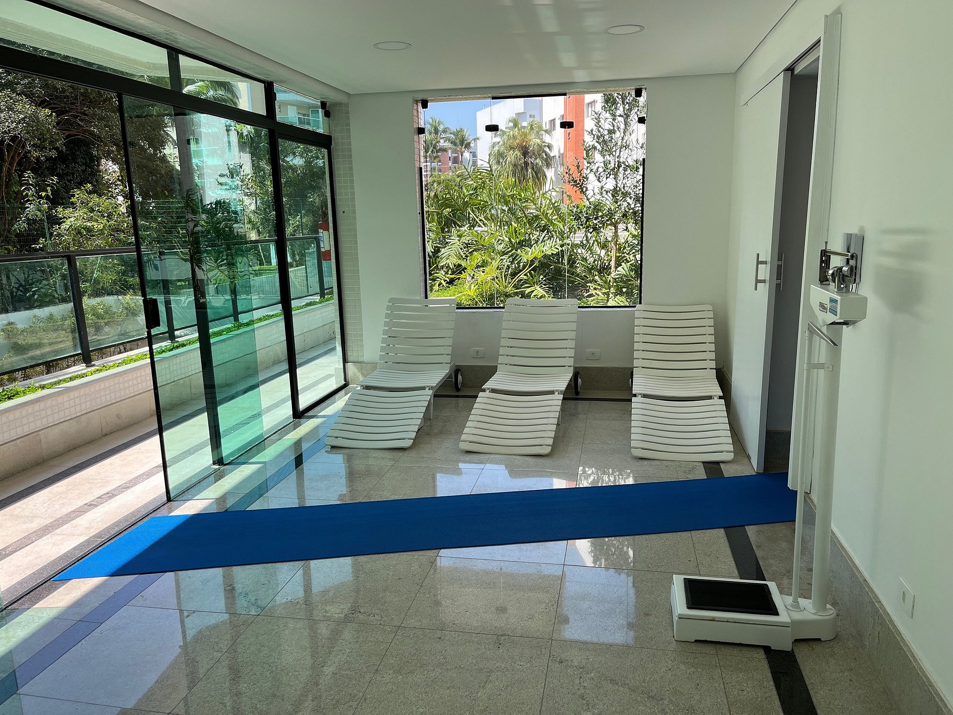 It has beach services (3 umbrellas, 3 coffee tables, 8-10 comfortable chairs and ice cubes for the cooler). The Condominium has a heated swimming pool with waterfall and sun loungers, dry and wet sauna and circular shower, gardens, games room with billiards, ping-pong, foosball and card tables, playroom, party room and gourmet space, with toilets, stove 6 burners, oven, sink, refrigerator, freezer, microwave, kiosks with barbecue grills, pizza oven and all other leisure facilities that can be used by guests / renters (check Reservations and Timetables at the Entrance), at no additional cost. There are 2 private parking spaces in the Condominium's internal parking lot.