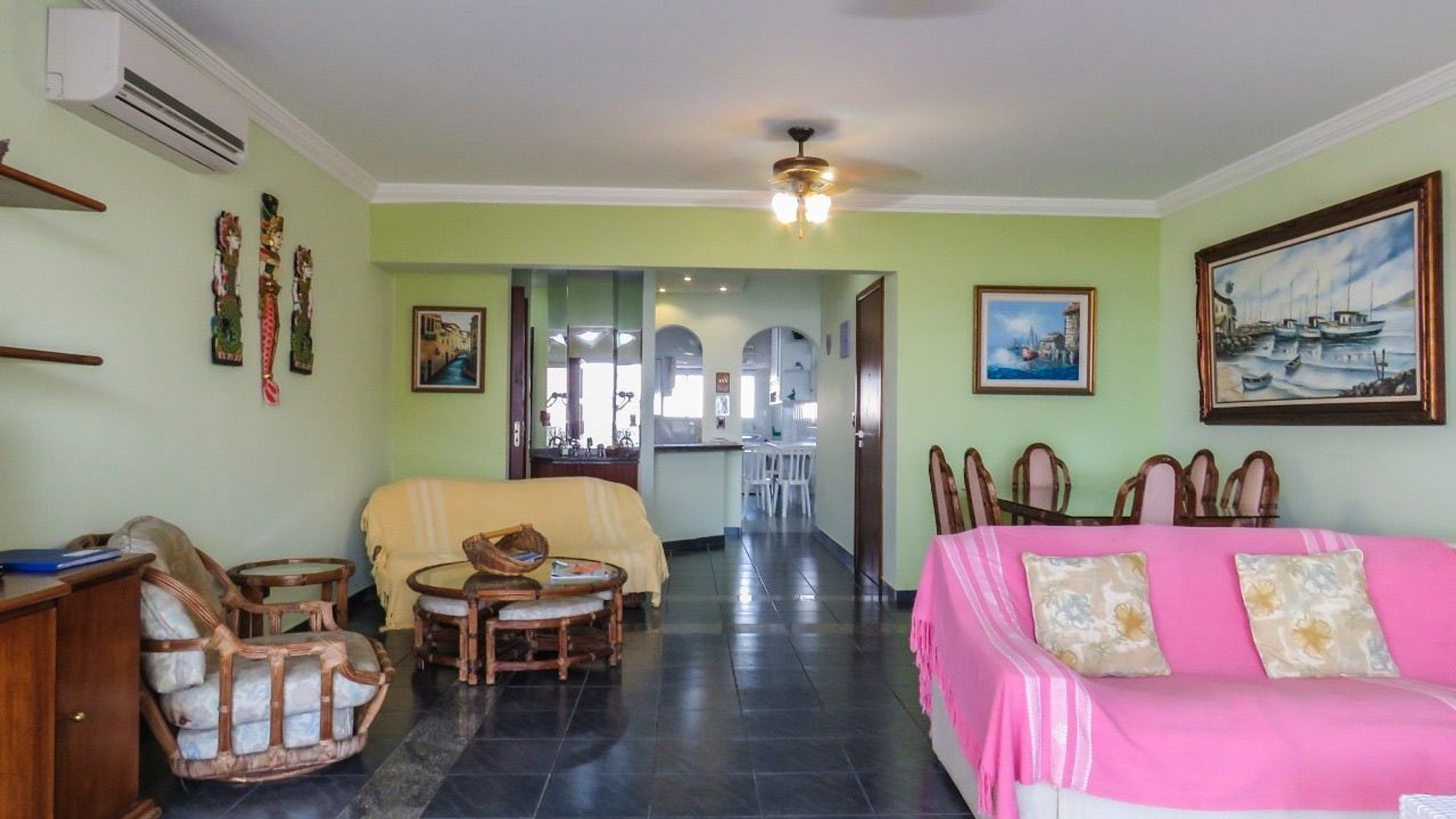 NOTA: La propiedad cuenta con una suite con cama matrimonial (2 plazas) + 1 dormitorio con cama matrimonial y TV (2 plazas) + 1 dormitorio con cama nido y litera (4 plazas) + 1 habitación de servicio ( 1 plaza) + 1 colchón extra y tiene capacidad para un estándar de 8 huéspedes bien alojados y un máximo de hasta 10 huéspedes con autorización previa del propietario y cargo extra por HUÉSPED/NOCHE ADICIONAL. Todos los dormitorios sociales y salas de estar tienen AIRE ACONDICIONADO y VENTILADORES DE TECHO con funciones de ventilador/extractor. Hay una RED DE PROTECCIÓN instalada en las ventanas y balcón de la propiedad para la seguridad de los niños.