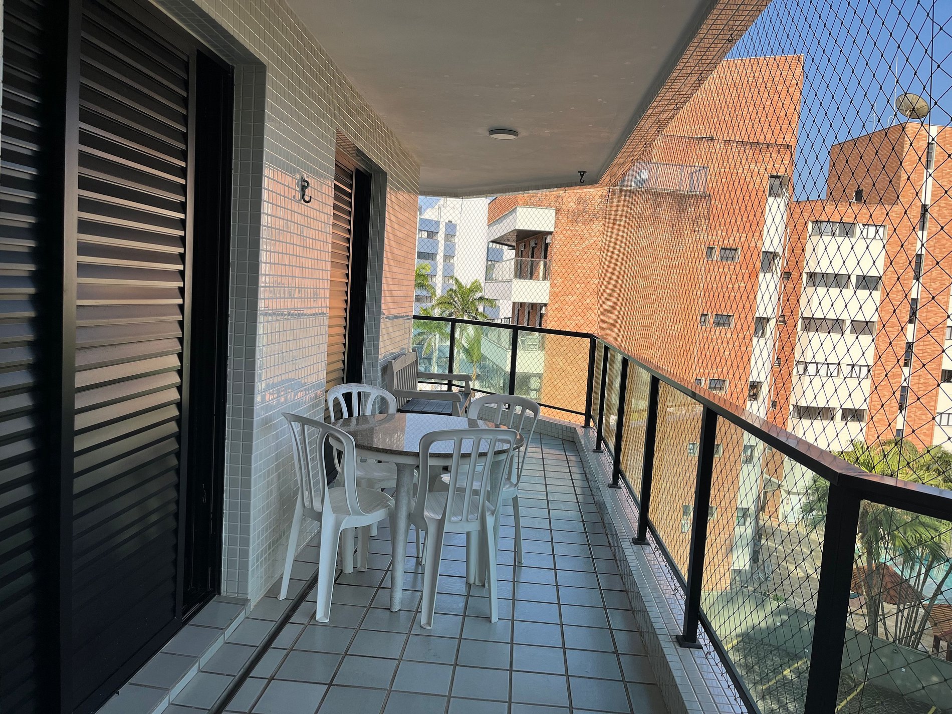 Cuenta con servicios de playa (3 sombrillas, 3 mesas de café, 8-10 sillas cómodas y cubitos de hielo para la hielera). El Condominio cuenta con piscina climatizada con cascada y camastros, sauna seco y húmedo y ducha circular, jardines, salón de juegos con billar, ping-pong, futbolín y cartas, salón de juegos, salón de fiestas y espacio gourmet, con sanitarios, estufa de 6 hornallas, horno, fregadero, refrigerador, congelador, microondas, quioscos con parrillas, horno para pizza y todas las demás instalaciones de ocio que pueden ser utilizadas por los huéspedes/inquilinos (consultar Reservas y Horarios en la Entrada), sin costo adicional. Hay 2 estacionamientos privados en el estacionamiento interno del Condominio.