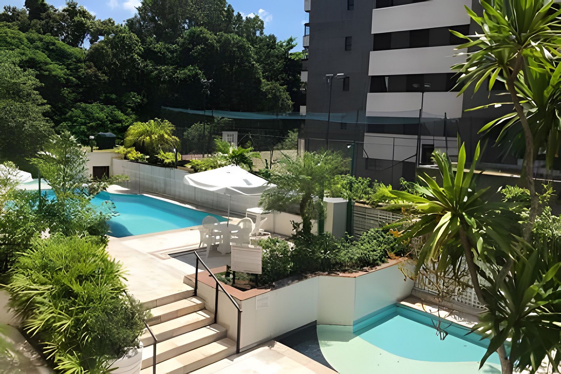 • VISTA MAGNÍFICA: Desfrute da vista espetacular das Piscinas do Condomínio e também de boa parte dos Jardins e Áreas de Lazer.