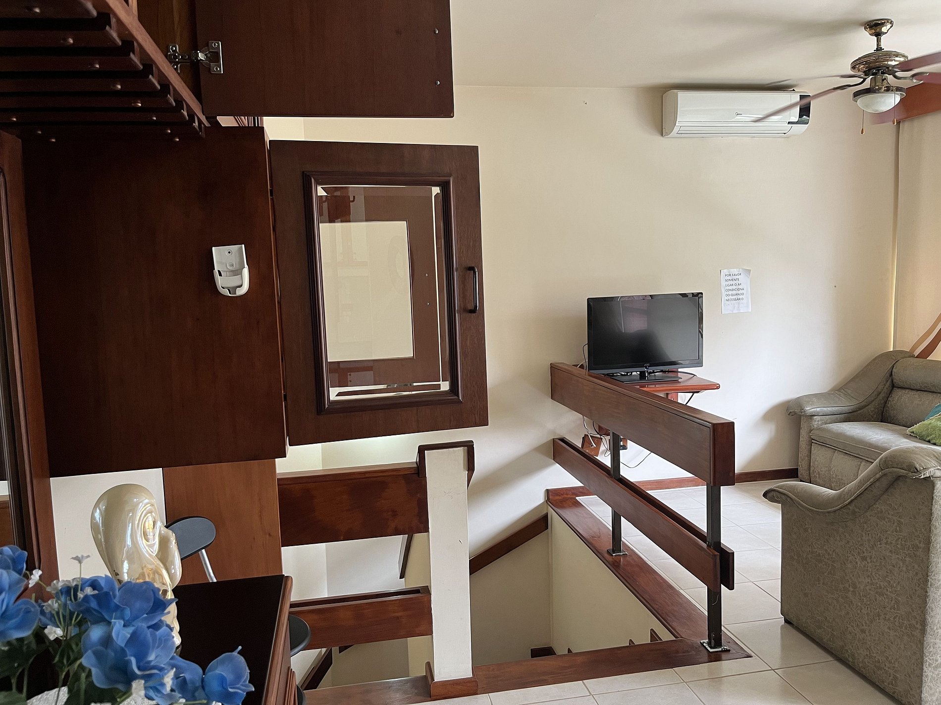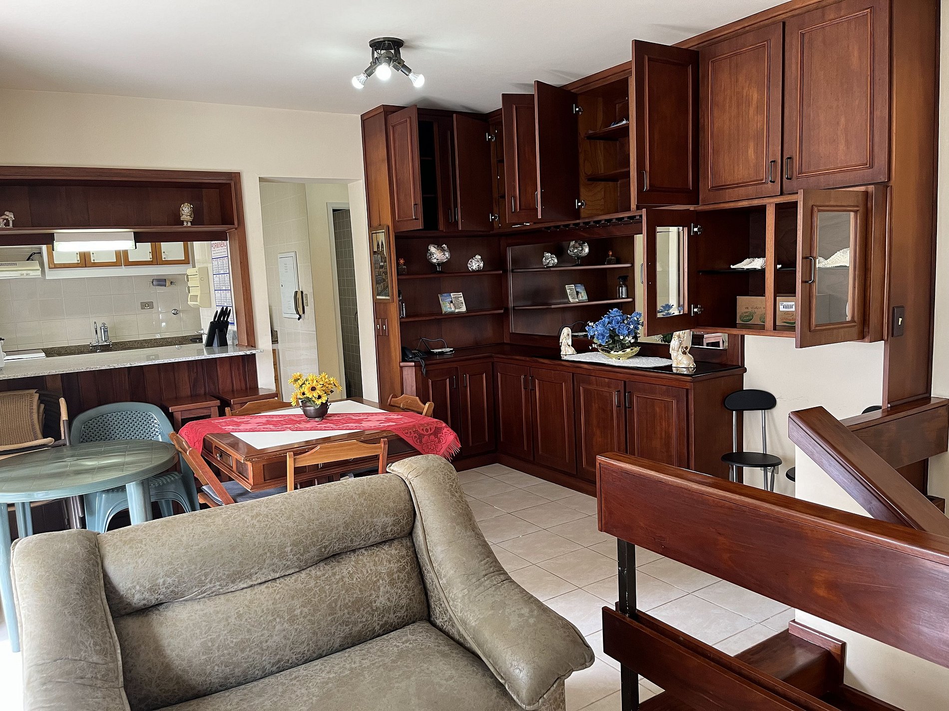 • Como este aptº é utilizado também pela família ou parentes do(s) proprietário(s), alguns armários estão trancados com chaves, cadeados ou presos com enforca-gato e não devem ser abertos pois tem objetos e utensílios de uso exclusivo do(s) proprietário(s). Em cada ambiente tem outros armários com cabides ou cômodas disponíveis para os hóspedes acomodarem seus objetos pessoais durante sua estadia.
