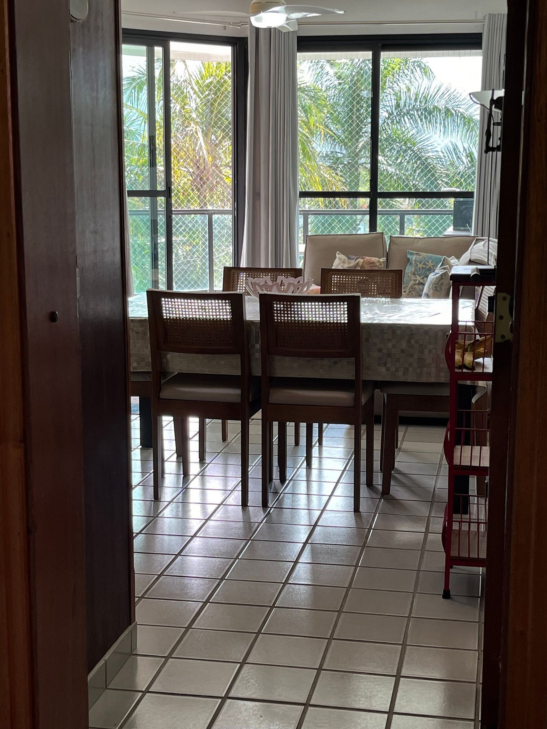 Adorável apartamento em frente à praia, com 4 dorms, sendo 3 sociais (1 suíte) e 1 dormitório de serviços, 3 Banheiros, capacidade normal/máxima de até 8-9 hóspedes, ventiladores/exaustores de teto silenciosos e eficientes em todos ambientes, bar, enorme varanda c/ vista p/ o mar, serra e Mata Atlântica, tela de proteção nas janelas e varanda, 2 vagas na garagem, perto do Shopping, Restaurantes, Lanchonetes, Lojas e principais atrações da RIVIERA (dá para ir à pé sem tirar o carro da garagem).
